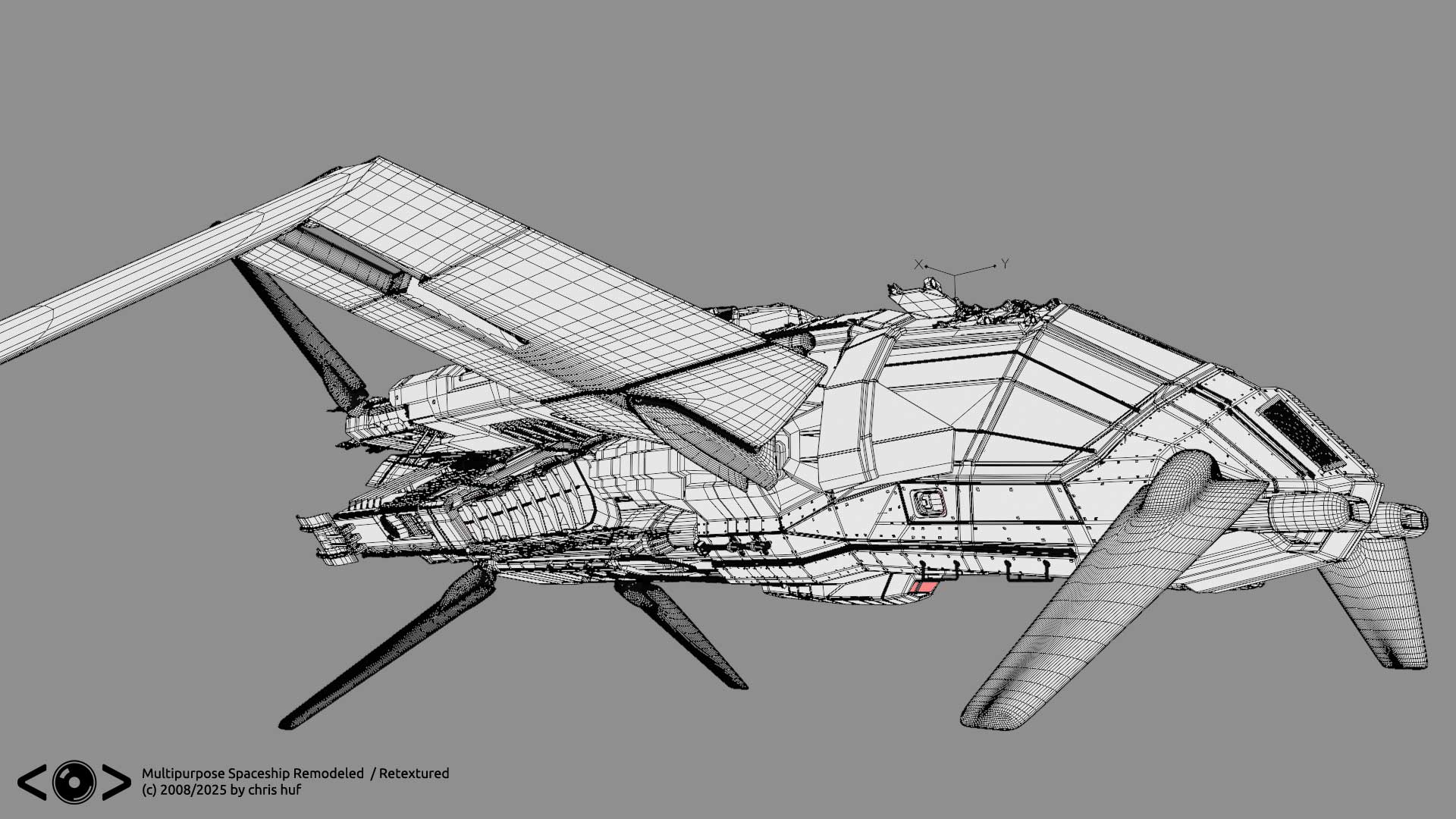 Long time ago, when I put together my first demo reel, I showcased a multipurpose spaceship extensively, which, considering the time constraints and level was just good enough for the resolution displayed. I always nagged me, that a lot of the parts where more or less stand in geometry, and texturing was a bare minimum. SO finally I found some time to more or less revamp it. (Especially the back part) and experiment a bit with blenders texture paint capabilities. Original model was done in LightWave3D rework was done in blender and photoshop. Source images for the textures from textures.com.