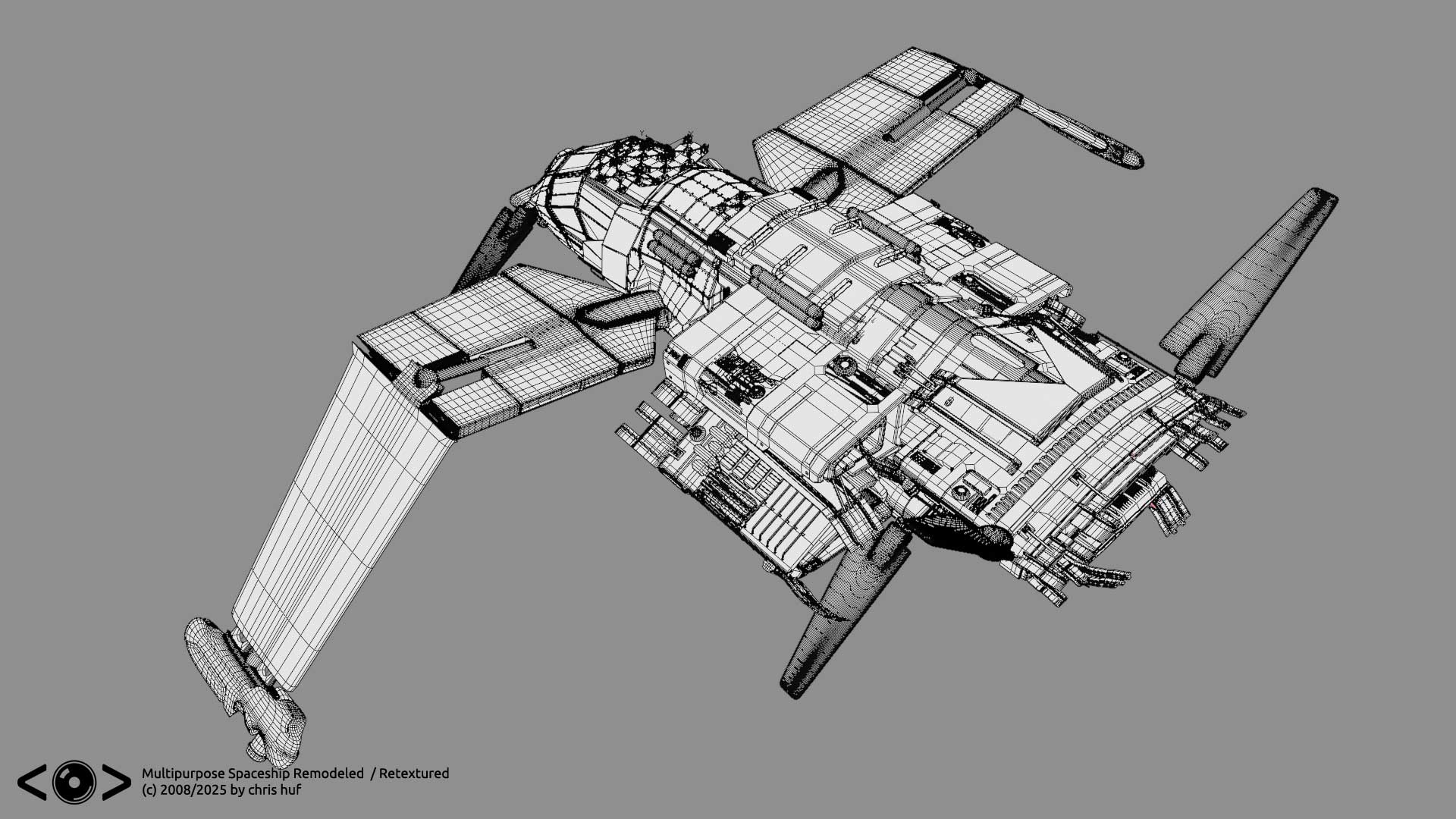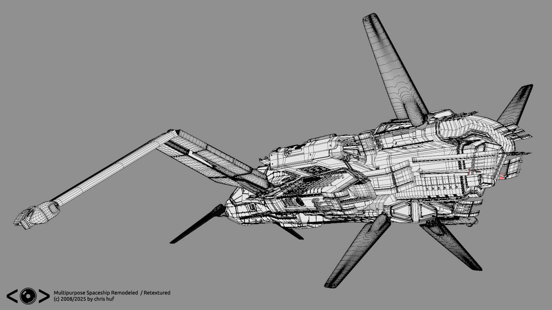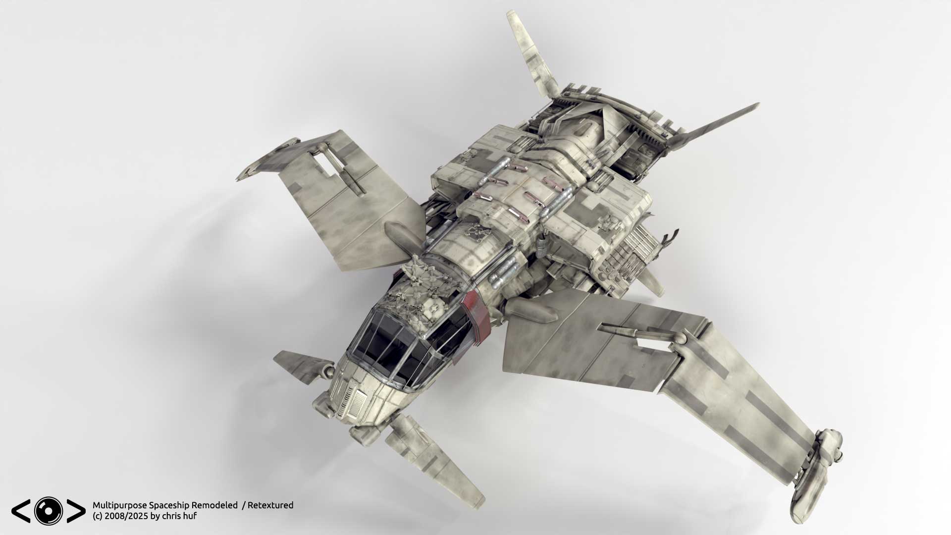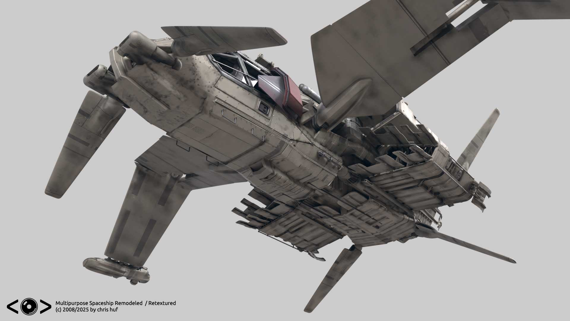 Long time ago, when I put together my first demo reel, I showcased a multipurpose spaceship extensively, which, considering the time constraints and level was just good enough for the resolution displayed. I always nagged me, that a lot of the parts where more or less stand in geometry, and texturing was a bare minimum. SO finally I found some time to more or less revamp it. (Especially the back part) and experiment a bit with blenders texture paint capabilities. Original model was done in LightWave3D rework was done in blender and photoshop. Source images for the textures from textures.com.